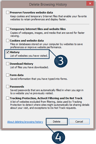 In the Delete Browsing History dialog box, next to History, click to select the check box.