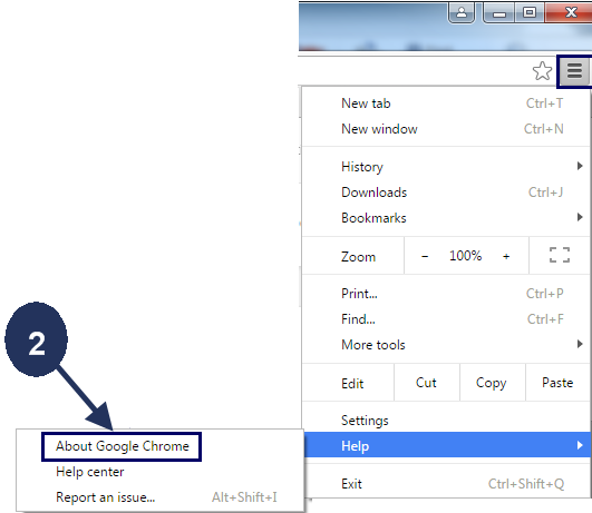 From the Google Chrome header click on the menu icon on and select Help from the menu.